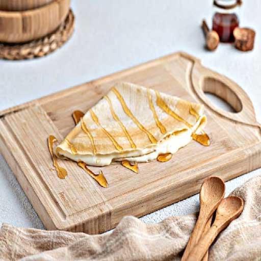 A soft, delicate crepe filled with creamy Kraft cheese, served with or without honey for a rich and satisfying sweet-savory treat.